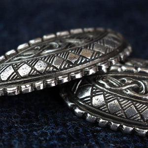 The solid pewter brooch has a broa style decoration inspired from the viking era.