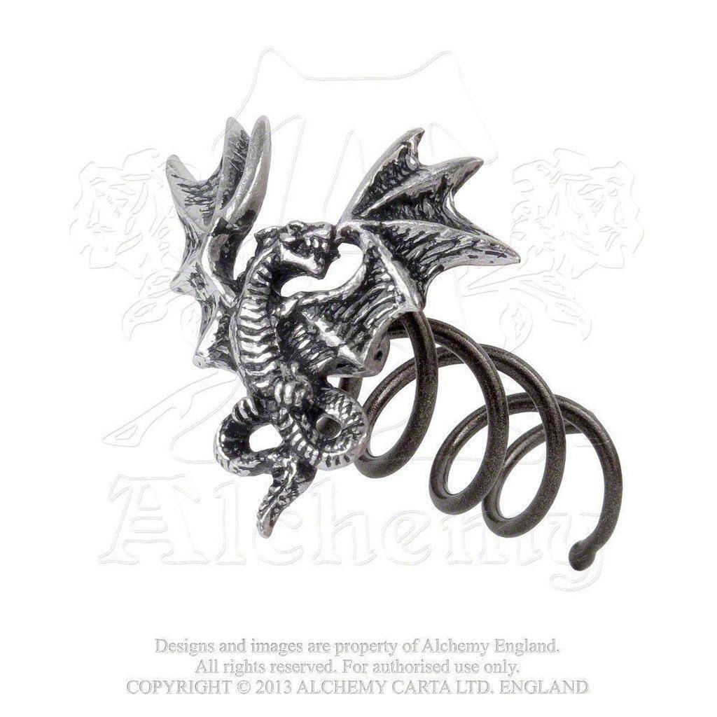 • An eye-catching smoke dragon hair screw crafted in pewter by Alchemy, with a detailed roaring dragon style.