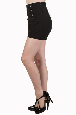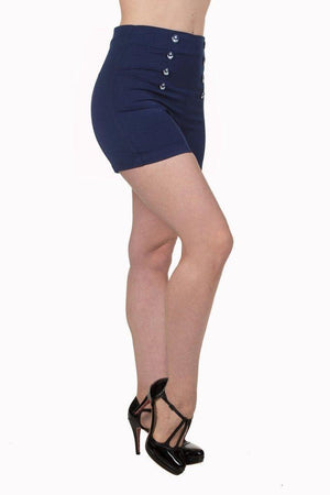 One look could kill with these stunning rockabilly ladies shorts by Banned Apparel, the "stay awhile shorts" in black or navy with decorative anchor detail front buttons.