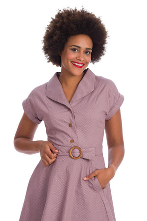 Elevate your retro style with the Spot Perfection Fit & Flare Dress by Banned Apparel. This 50s-inspired dress features a flattering V-neckline, convenient front button closure, and a chic belt detail. With short sleeves and side pockets, this dress is both fashionable and functional. Choose from two chic colors to add some fun to your wardrobe.