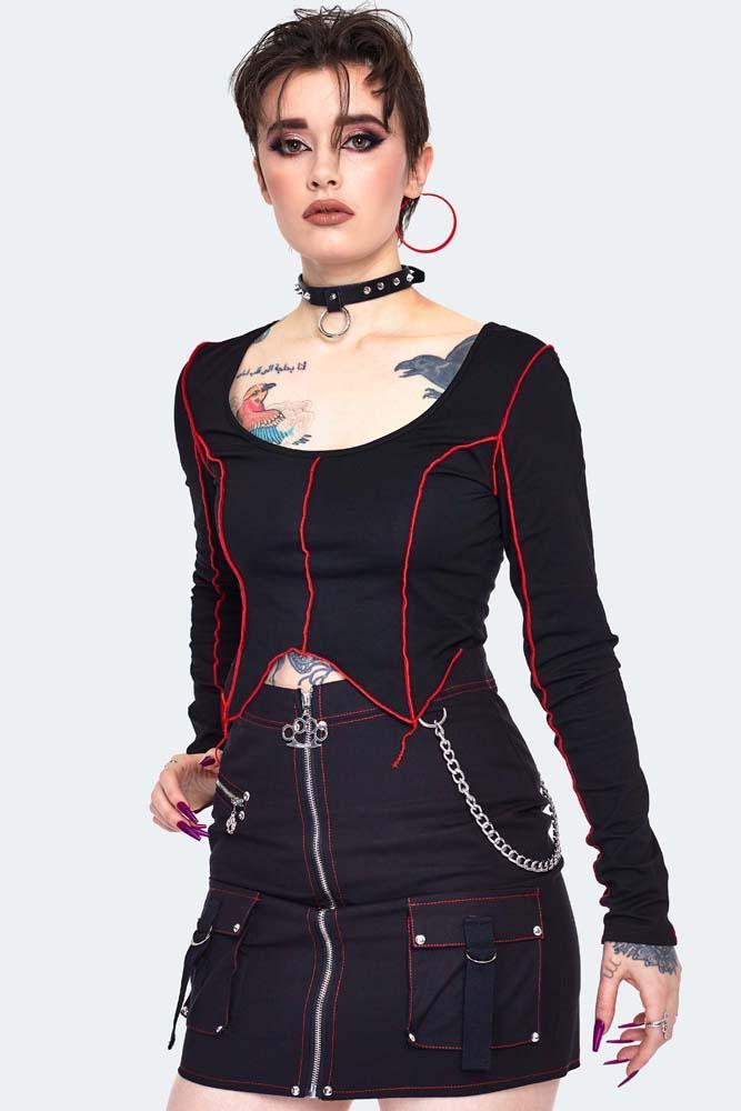 • The Cargo Contrast Stitch Mini Skirt by Jawbreaker brings playful punk energy with its high-waisted cargo design and bold contrast stitching. Featuring a knuckleduster puller on the front zip, statement pockets, and a chunky wrap-around chain, this skirt adds edgy attitude to any outfit. Perfect for those who love to mix fun details with rebellious style.