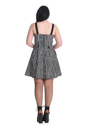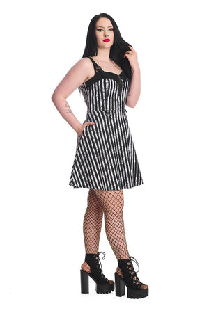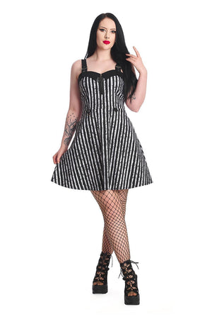 • Dare to stand out with the Spooky Nightwalks Flaired Dress by Banned Apparel. The striking gothic design, featuring a sweetheart neckline and eyelet detail, will turn heads. Plus, with side pockets and a front zip closure, this dress is both stylish and functional. Available in three stunning colors.