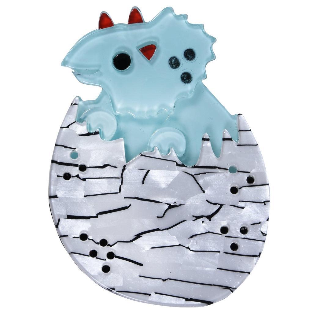 This lightweight brooch has a trendy baby dino design, resin finish and locking C-clasp pin.