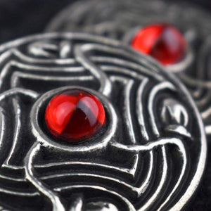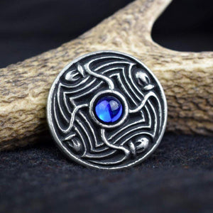 This sumptuous brooch from Asgard Jewellery, hand-crafted in Scotland, is perfect for special occasions. The style has a glass in red, green or blue.