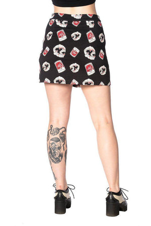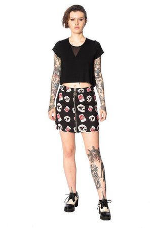 Combine this sexy gothic skirt from Banned Apparel, with a simple slip top for an extra statement layer for any occasion.