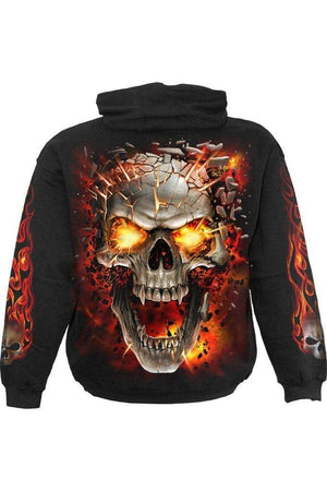 This hoodie is made from the highest quality, fleece and the print uses skin friendly, azo-free, reactive dyes. Featuring skull blast print, ribbed hem and cuffs, long sleeves and a high neckline.
