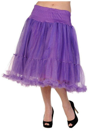 Get out and party in this "Petticoat" long skirt from Banned. Made from 100% polyester and in a style that does not crease. Available in purple, black or white.