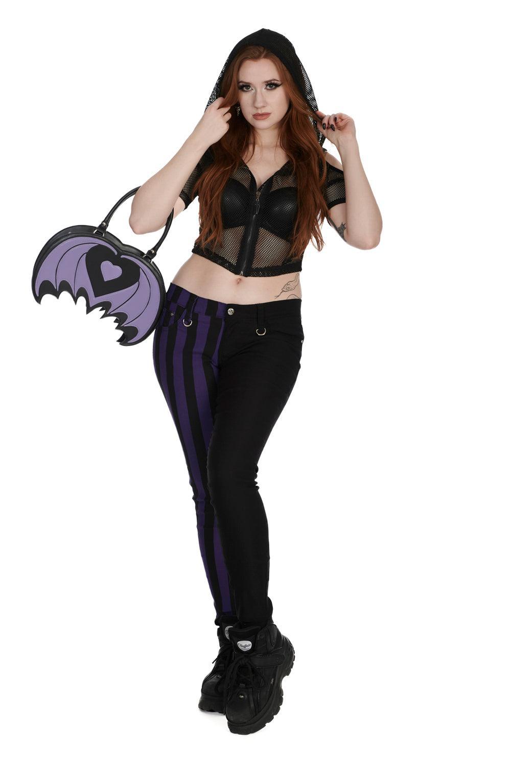 • Unleash your inner goth with Banned Apparel's Half Black Half Striped Trousers. Featuring a Beetle stripe design, these trousers are made with super stretch fabric for ultimate comfort. Plus, you can customize your look with the branded D rings on loops for attaching chains. Time to rock that edgy style!