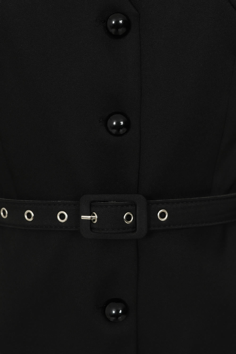 The Black Scarlett Jacket by Banned Apparel is an absolute showstopper for retro enthusiasts. This dramatically tailored piece features a cinched waist belt, structured layered shoulders, and a classic front button closure that exudes vintage sophistication. The impeccable fit hugs your curves in all the right places, creating an instantly flattering silhouette. A truly magnificent addition to any wardrobe, this jacket transcends seasons and trends, delivering timeless glamour with every wear. Unmissable for those who demand exceptional style.
