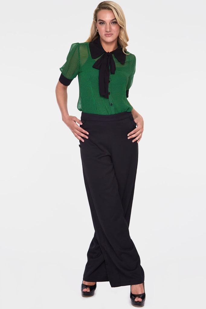 All eyes will be on you and your celebrity style rockabilly top from Voodoo Vixen! The style is available in purple or green color.