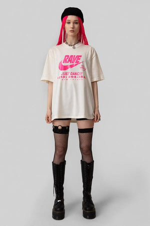 The t-shirt has "Rave" front logo print, short sleeves and a regular fit.