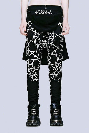 These awesome white and black infinity clip pants from Long Clothing are a striking style, they are designed by Oxby/Jorden and have a geometric infinity print, adjustable clips on the sash and bag (both are included), they can be clipped to the front, side or back of the pants (or left off) and also have adjustable buckles at the bottom of the legs.