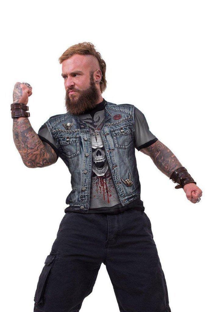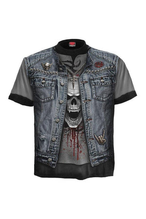 • Turn it up and rock yourself out, in this malevolent gothic t-shirt from Spiral Clothing, with petrifying skull print. Your fave fright night outfit.