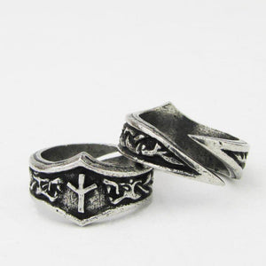 The chunky ring has an Algiz runic alphabet X or Z and a knotwork dragon design and is adjustable.