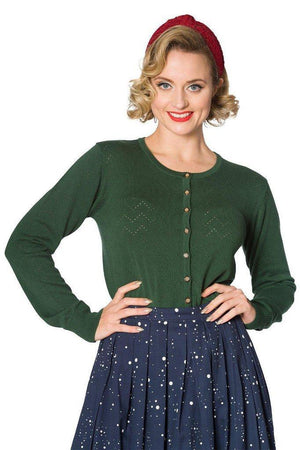 This gorgeous rockabilly cardigan from Banned Apparel, is sure to complement and complete any look. The style is available in several appealing colors and in plus sizes also.