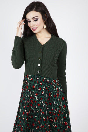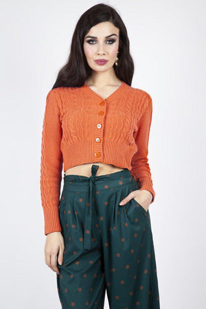 Get ready for the ultimate fashion staple with this 40s glamorous rockabilly cardigan from Voodoo Vixen. This style is available in pink, orange, black and green color.