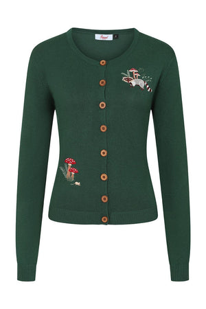 Boost your winter attire with the playful and edgy Woodland Mushroom cardigan from Banned. Featuring whimsical embroidery, a classic round neckline, long sleeves, and front button closures, this vintage-inspired piece is guaranteed to turn heads. Available in a variety of colors to suit any occasion. Take your style game to the next level with this top-quality garment. (Note: Each production batch may result in slight color differences).