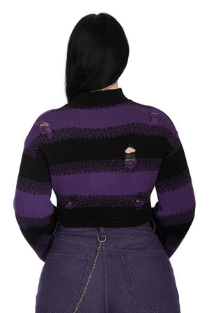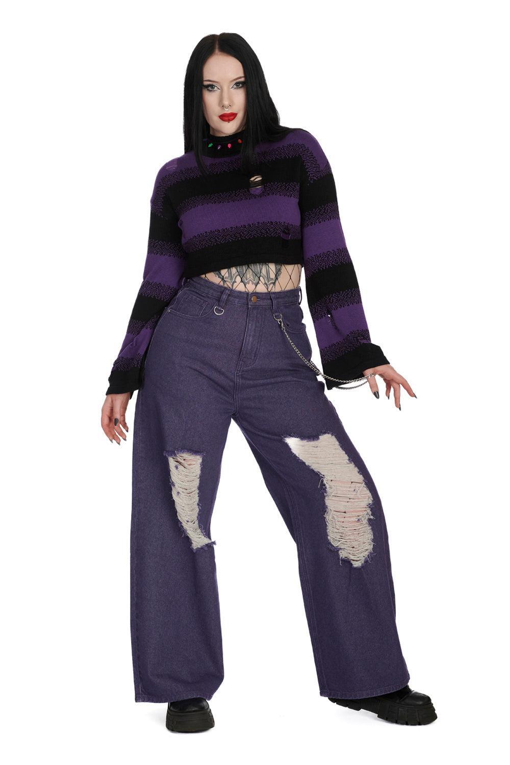 Unleash your rebellious side with the Candyfloss Jumper from Banned Apparel. This gothic and retro-inspired crew neck boasts a daring cropped design and long sleeves, perfect for those craving adventure. Say goodbye to ordinary and hello to extraordinary. The style is available in two striking colors.