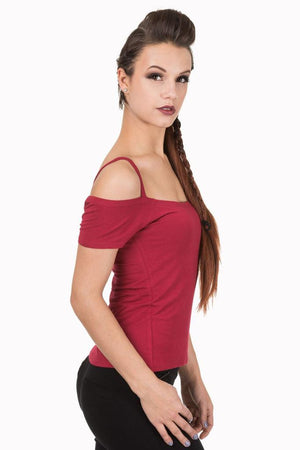 • This gorgeous rockabilly top from Banned Apparel, is perfect for any vintage fashionista! The style is available in bordeaux or navy color.
