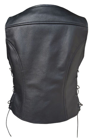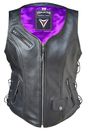 A badassical ladies leather biker vest called Rebel, made from a soft and flexible top quality hide leather, with leather laces at the sides so it moulds to your shape.
