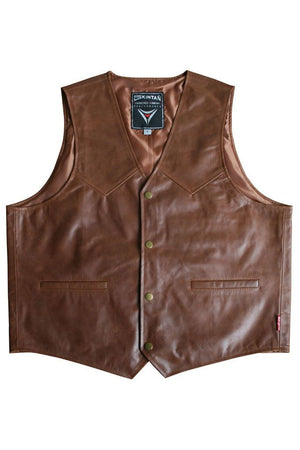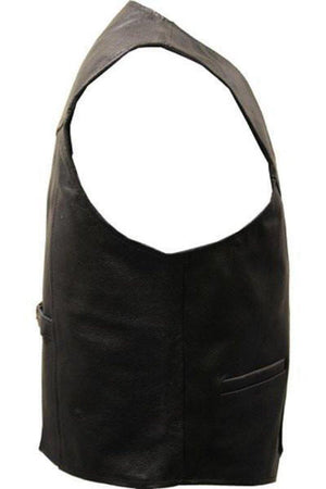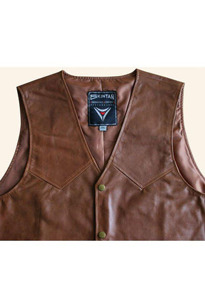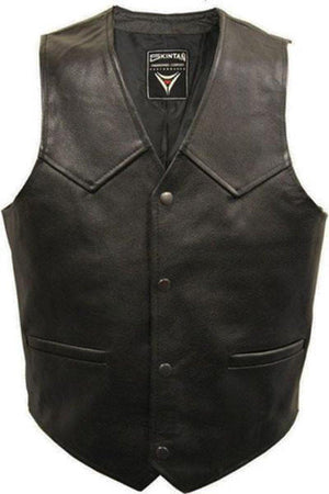 A classic black or tan leather biker vest from Skintan Leather, made from top quality hide leather. The design is timeless and classic, so you are free to fully customise this waistcoat with your own patches and pins.