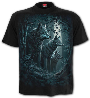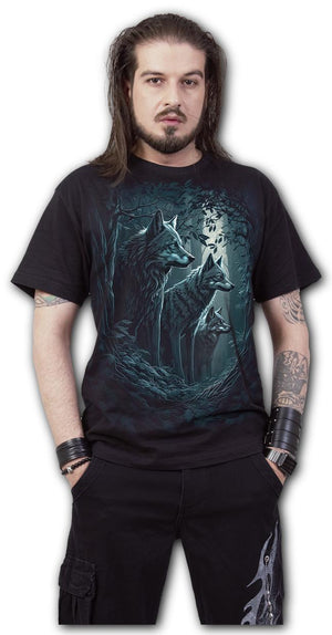 • The Forest Guardians gothic T-Shirt in black from Spiral Clothing is a gothic must-have. The design depicts a trio of warrior wolves, standing guard under the moonlit night. Stay protected and stylish with this unique and powerful t-shirt. Made with quality materials and attention to detail, this shirt is perfect for any fan of the mystical and mysterious..