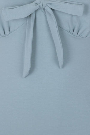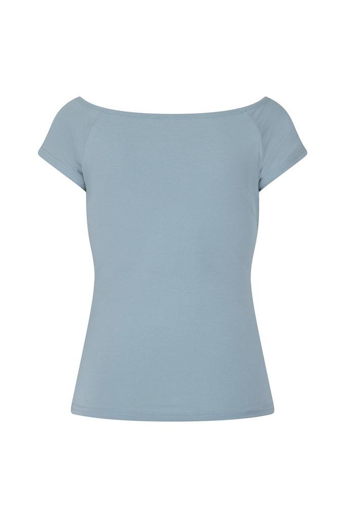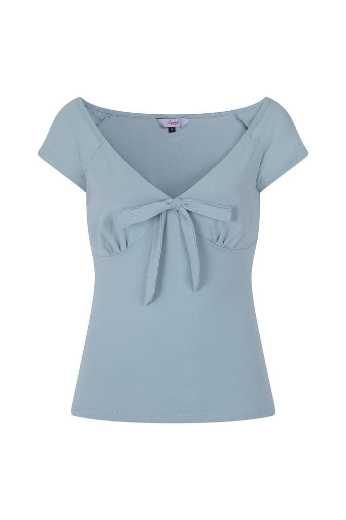 The top has a front anchor design, a boat neckline, short sleeves and a figure accentuating fit.