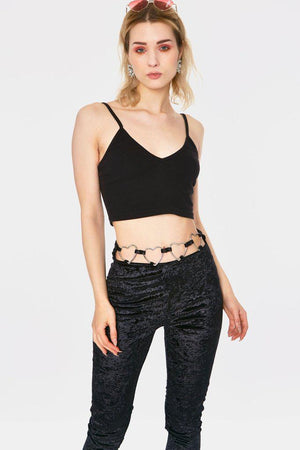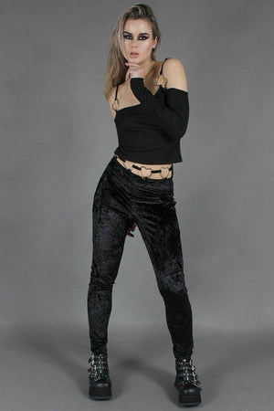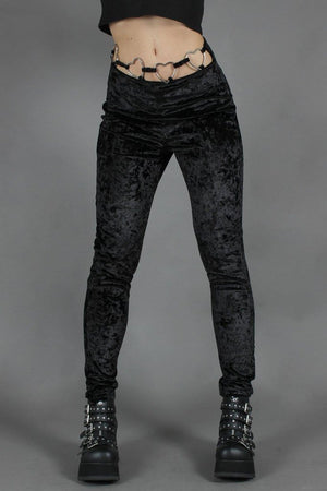 These dark velvet leggings have metal hearts detailing and a figure accentuating shape.