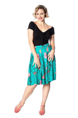 This captivating rockabilly skirt from Banned Apparel, is perfect for looking like a diva at those posh occasions. This style is available in cream and teal color.