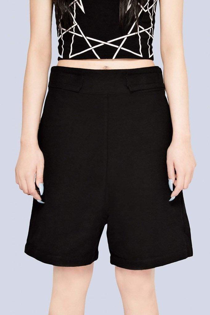 • A slammin' pair of unisex plain black shorts from Long Clothing, with a velco fastening for an adjustable fit.